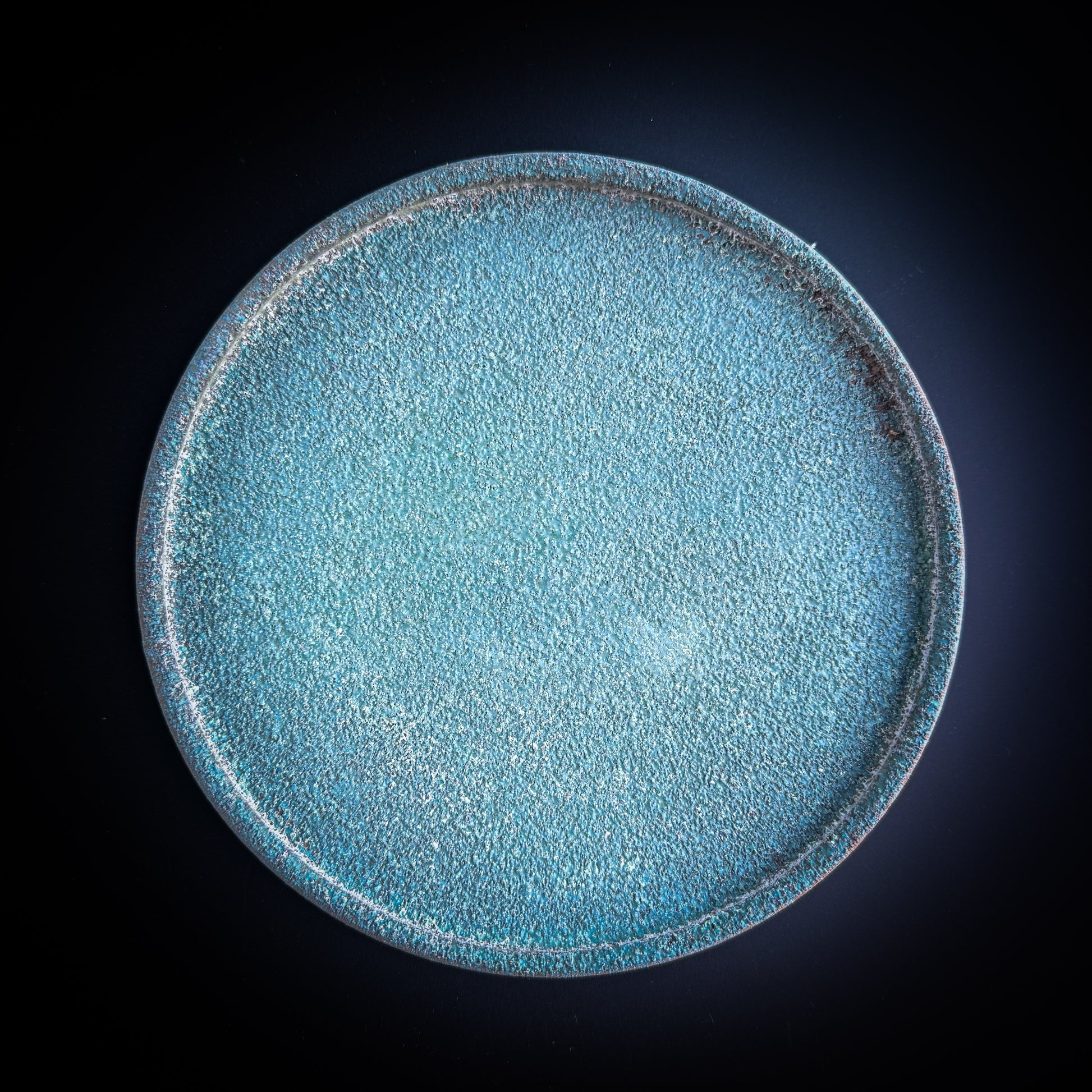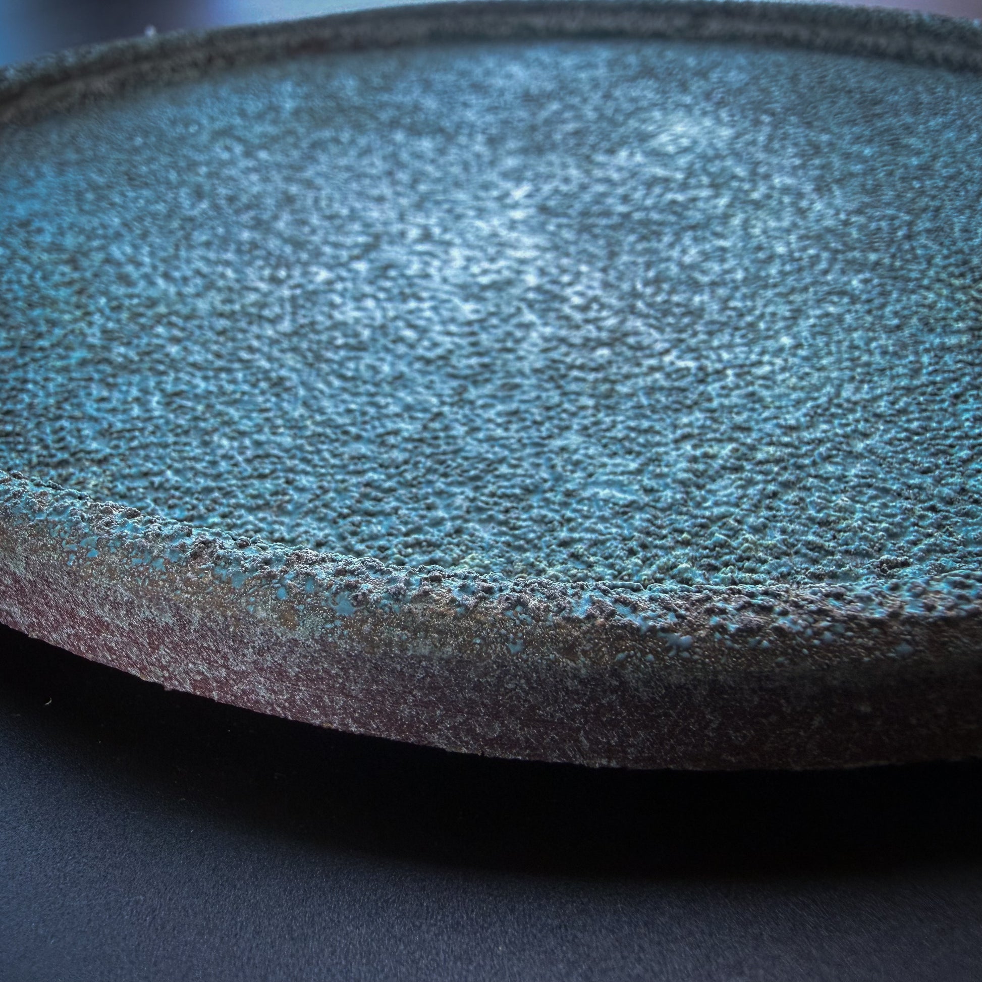その名は、銅が年月をかけて纏う錆の色から来ている。時間だけが刻める景色を、野口悦士は窯の炎で呼び出す。